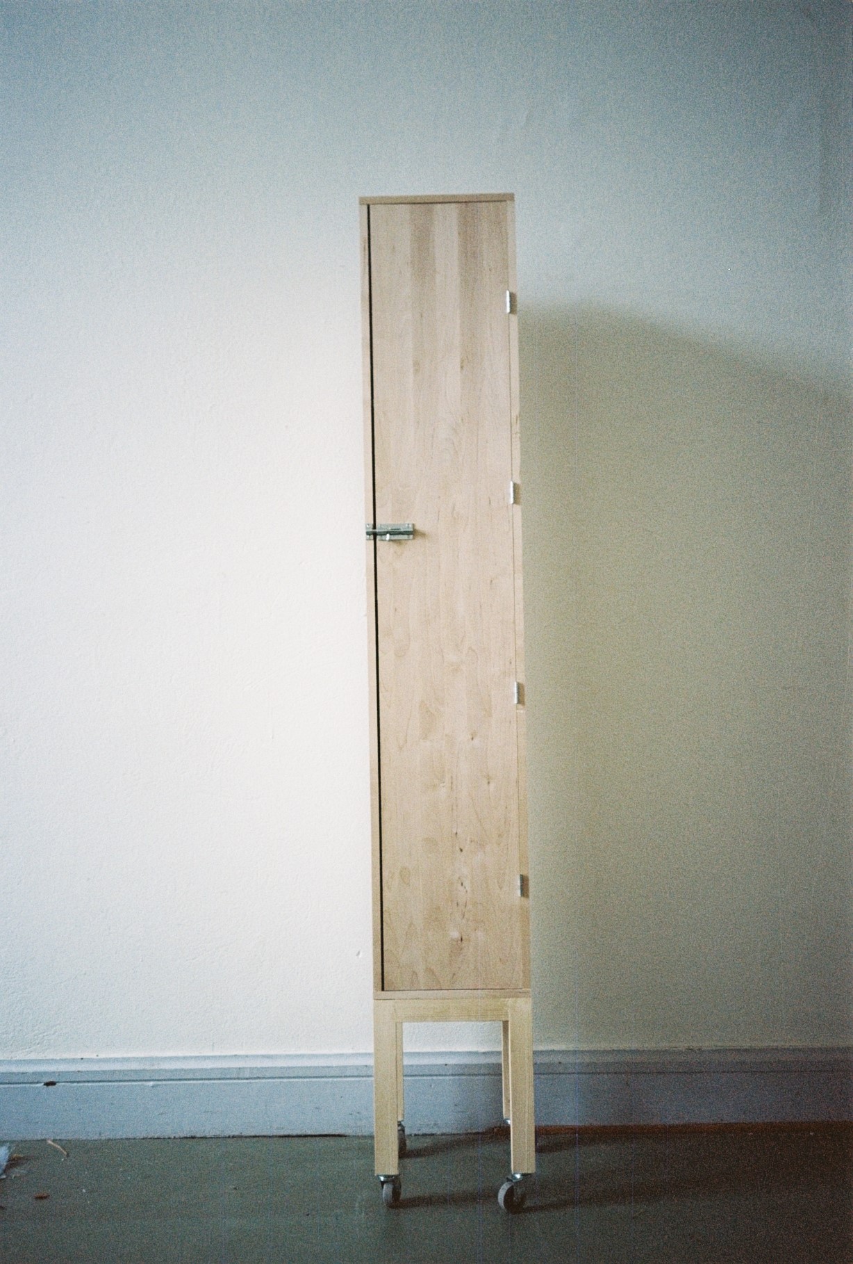 Below is a selection of objects, mainly furniture made out of birch, pine and steel (1) A locker based on the concept of the designer role explored in BRIEF, it is ambulant and contains the project (2) A floral side table and in the right corner, a small table gifted to my computer bound partner (3) The cut bench (4) A shelf inspired by the city library in Göteborg (5) The opening furniture, inspired by the rituals of the visitor in a gallery